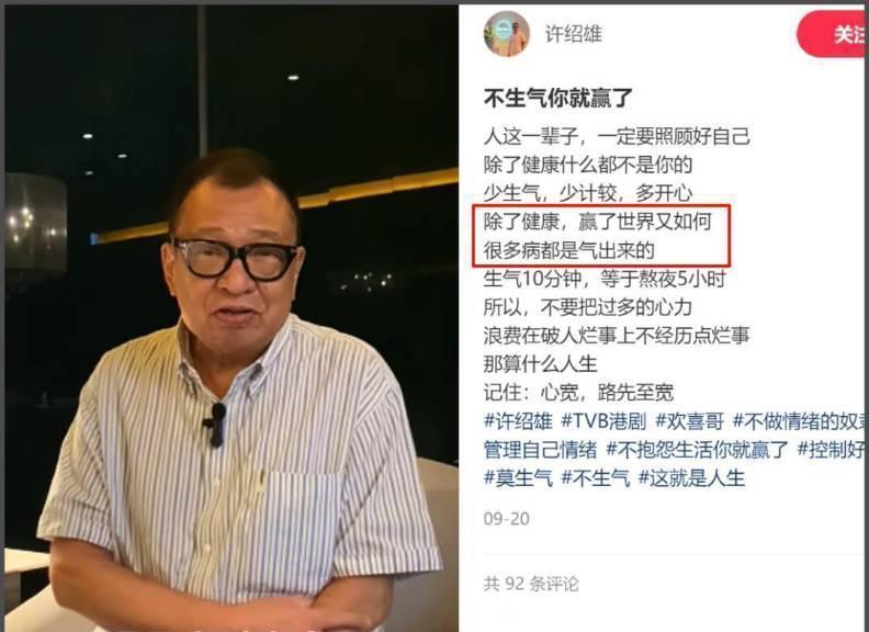 豪门出身却甘当“绿叶”,他的清醒打了谁的脸?许绍雄的特别,在于他把普通人的人生过得一点都不普通。出身豪门,却从不去炒作家世;演了一辈子配角,却比很多主角更被尊重。他曾在采访里分享过一段话,现在看来像是对自己一生的总结:“除了健康,赢了世界又如何?”